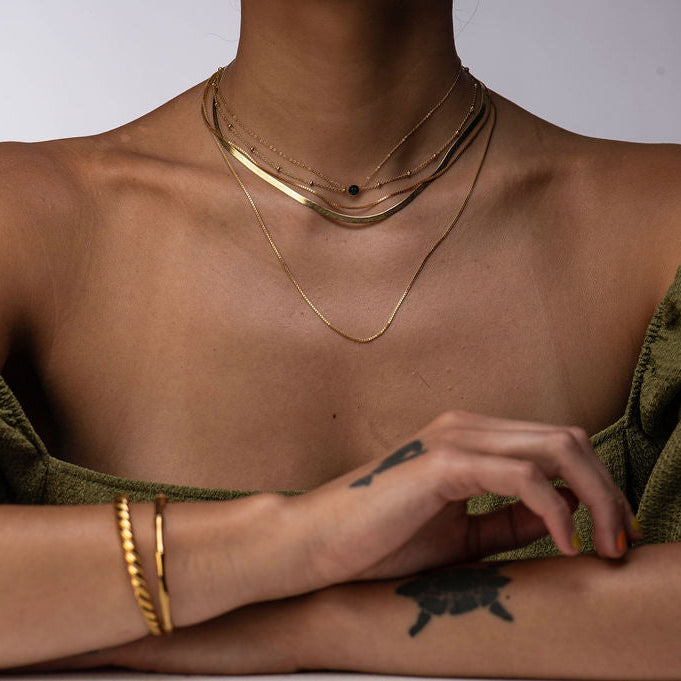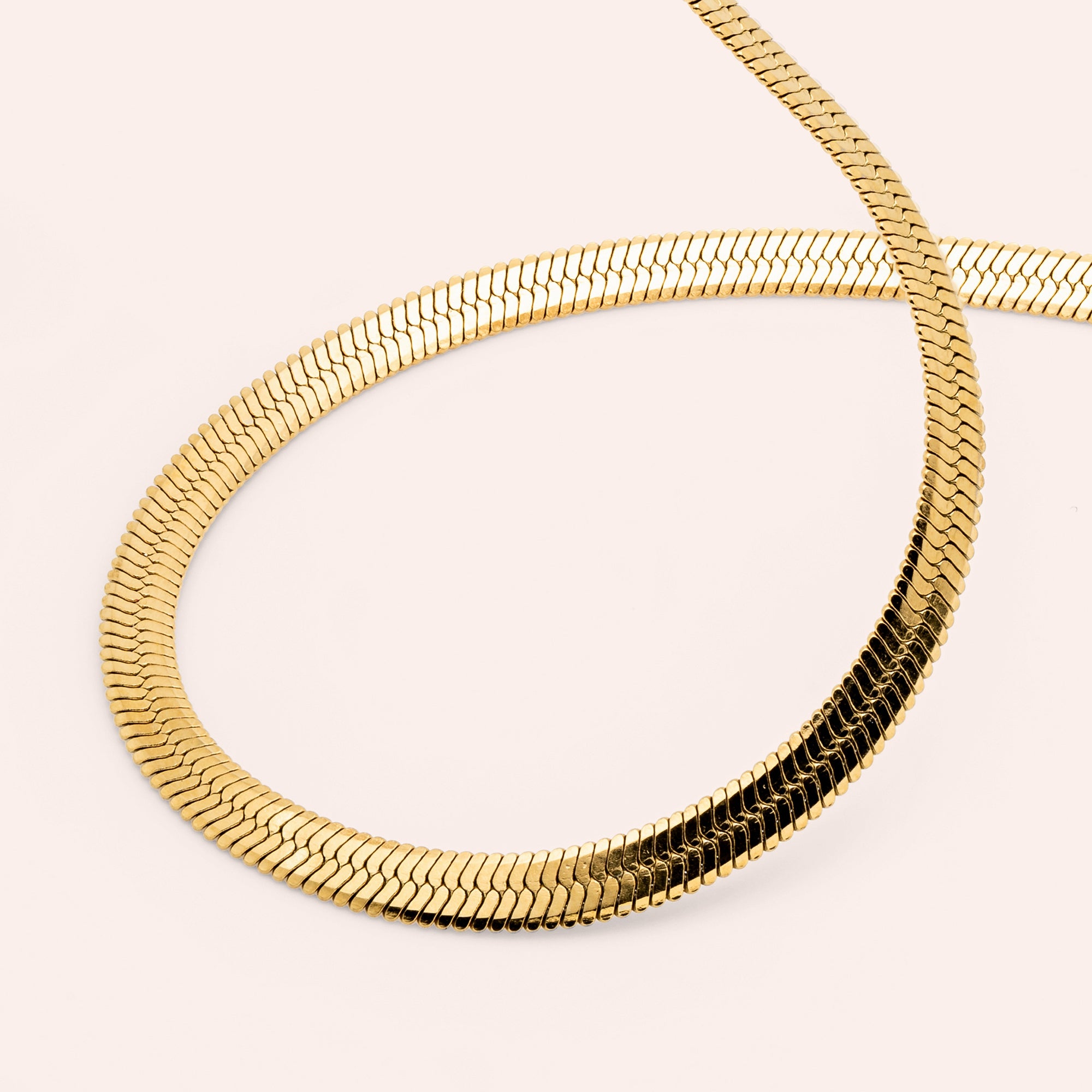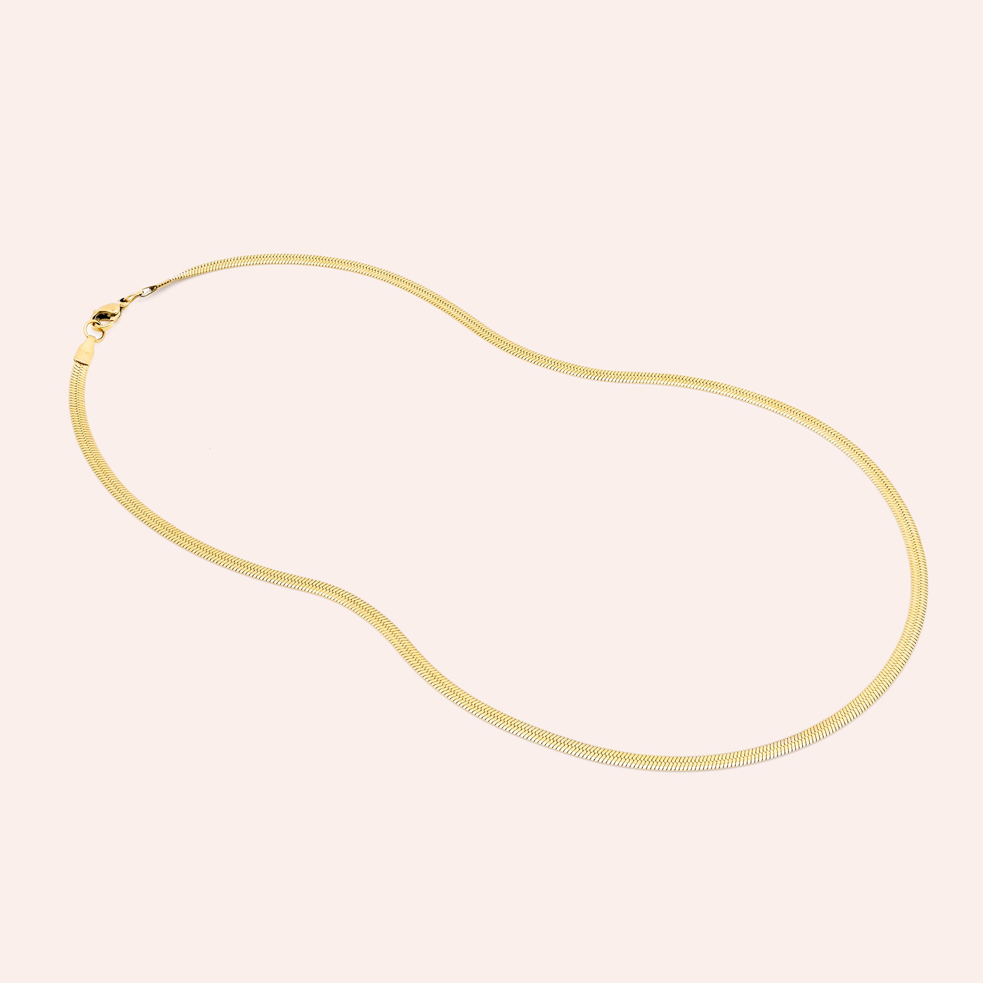 Our handcrafted snake chain necklace combines timeless elegance with everyday versatility. Featuring genuine 18k gold plating that resists tarnishing, this piece maintains its lustrous finish through regular wear. The adjustable length design makes it an ideal foundation for layering or wearing solo, seamlessly complementing any jewellery collection. A refined staple that transcends seasonal trends.